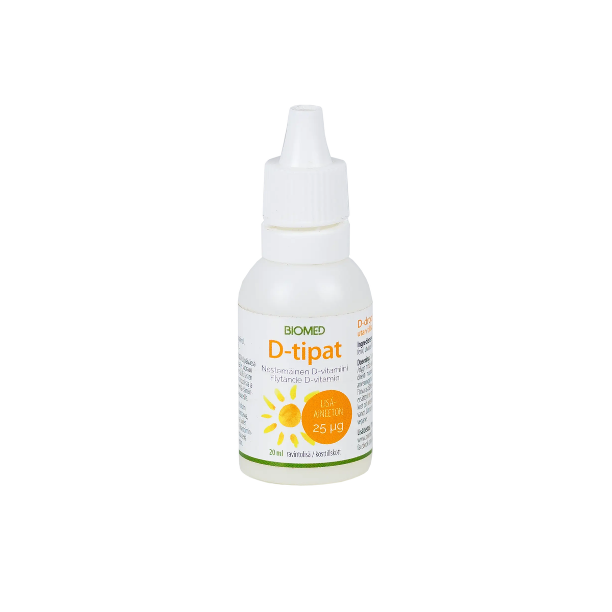Helppokäyttöinen ja riittoisa – 25 µg D3-vitamiinia/tippa