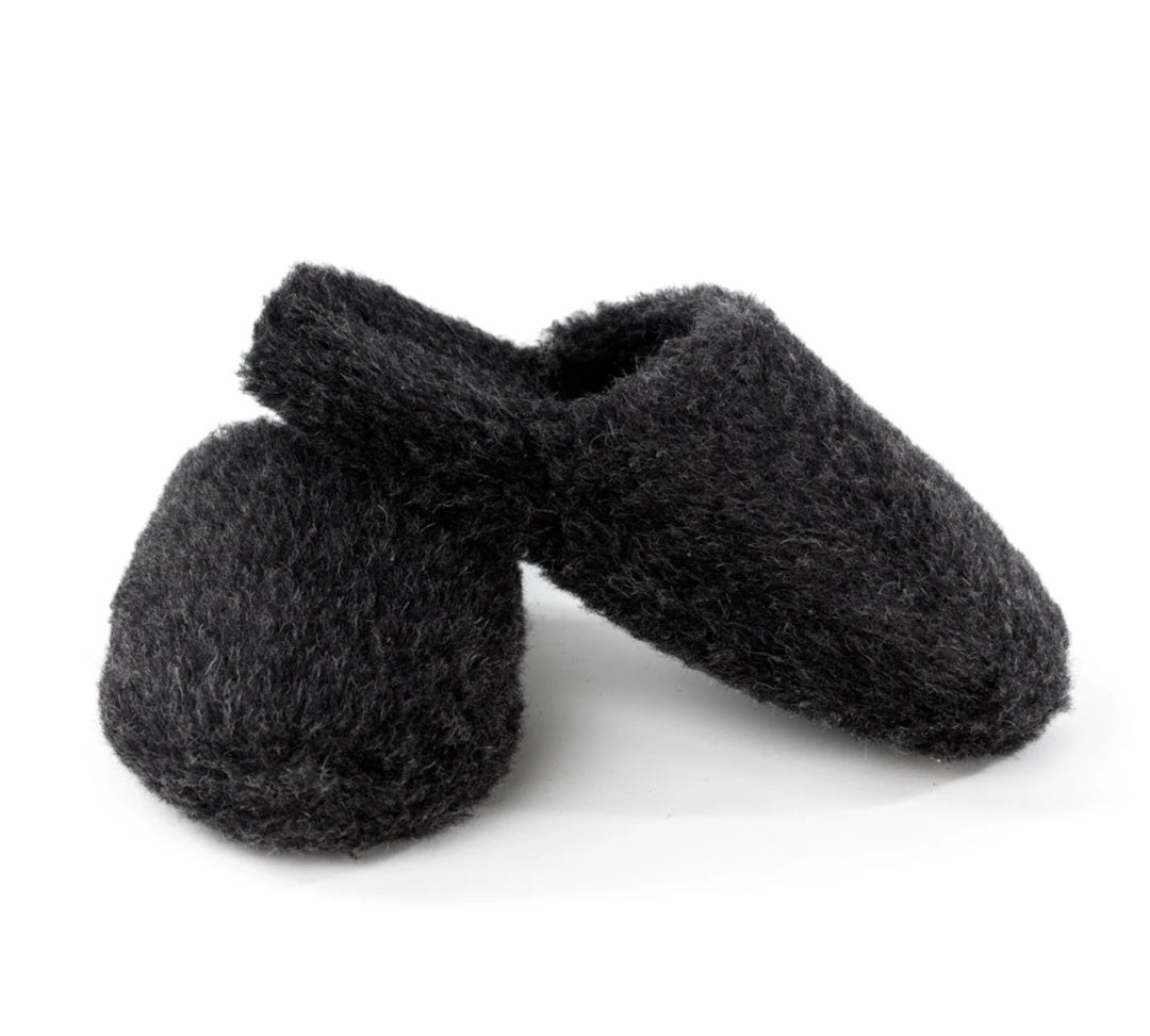- Tummanharmaat lampaanvillalipokkaat - Mulesing-vapaa villa, pohjassa liukueste - Pientä mitoitusta – jos olet kahden koon välillä, valitse suurempi