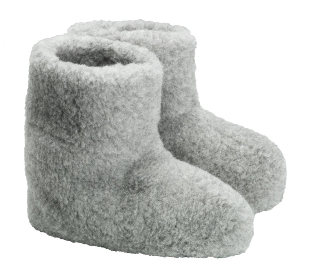 - Vaaleanharmaat lampaanvillatohvelit - Mulesing-vapaa villa, pohjassa liukueste - Pientä mitoitusta – jos olet kahden koon välillä, valitse suurempi